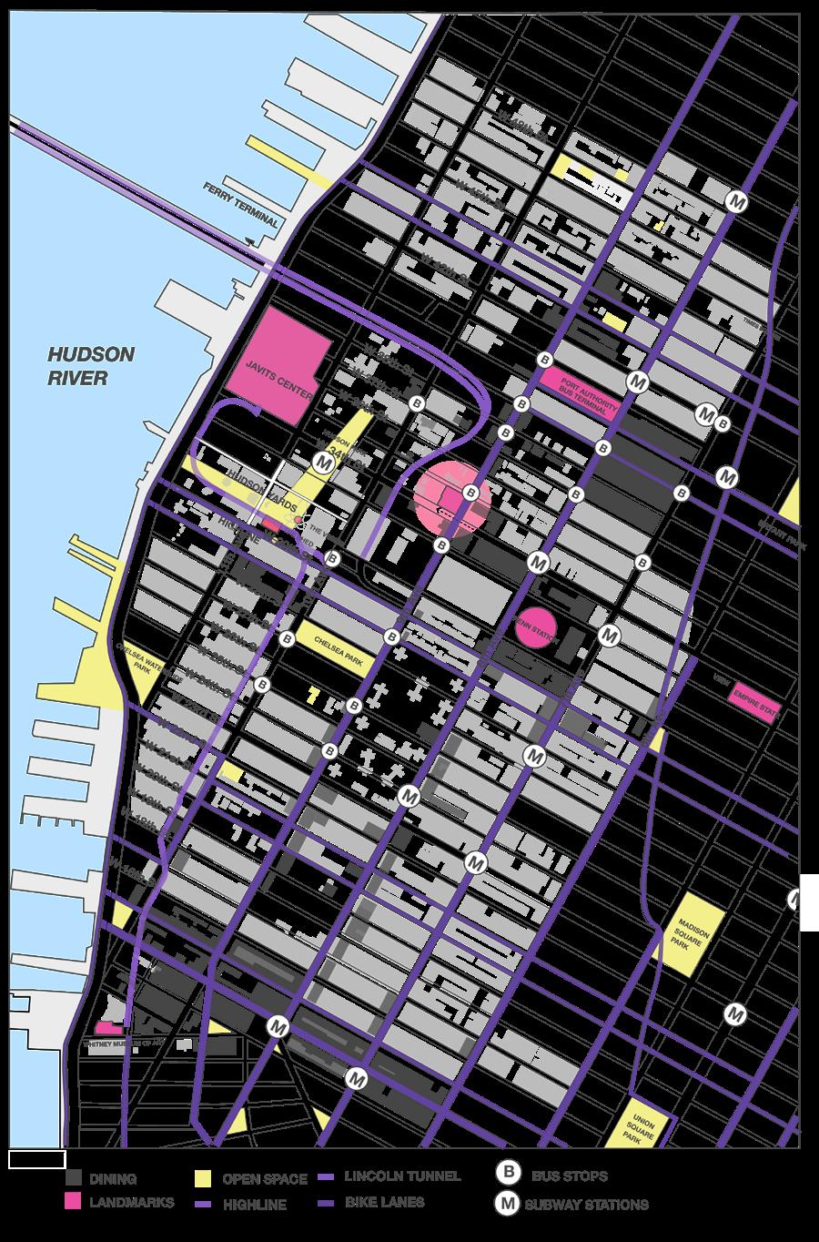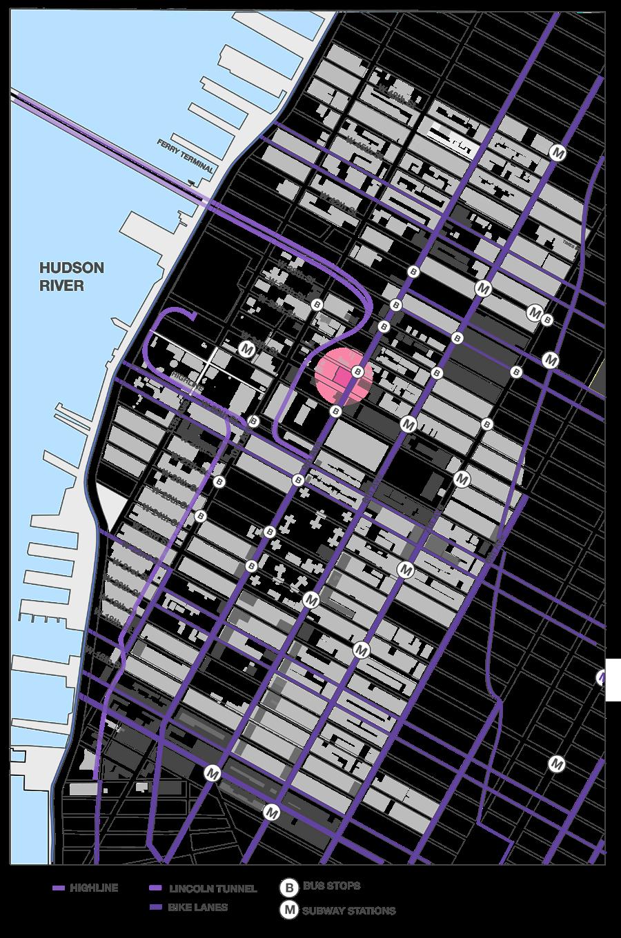 Lyft NY HQ is an office space in the meatpacking district of New York City, which sits in close proximity to a previously industrial area that is being revitalized through a series of urban interventions: the High Line , a retroffited train rail, and Hudson Yards, an old rail yard. The project is Lyft’s first bikes and scooters headquarters, in which prototypes will be tested and built.