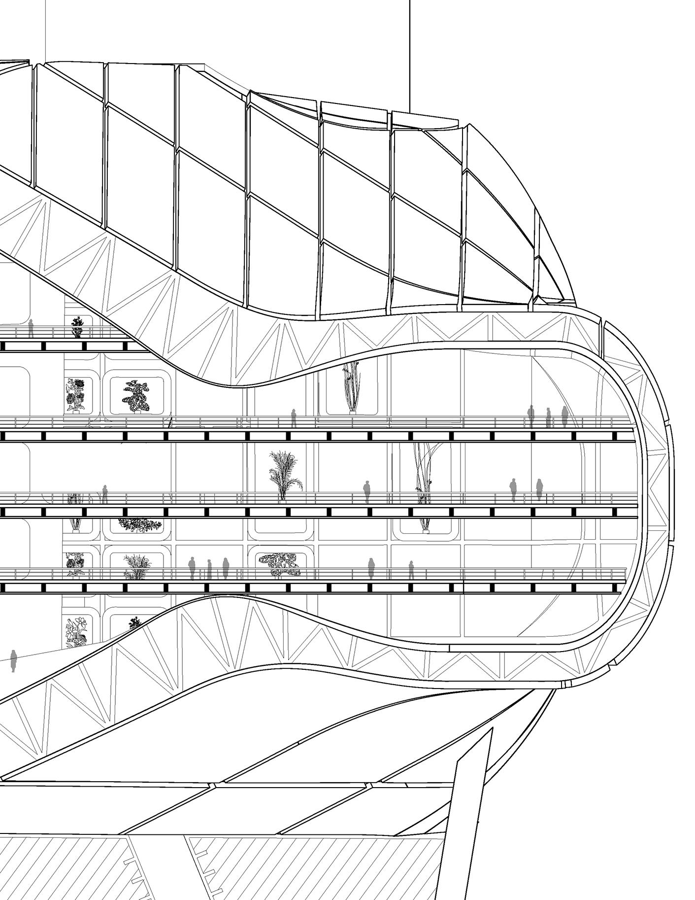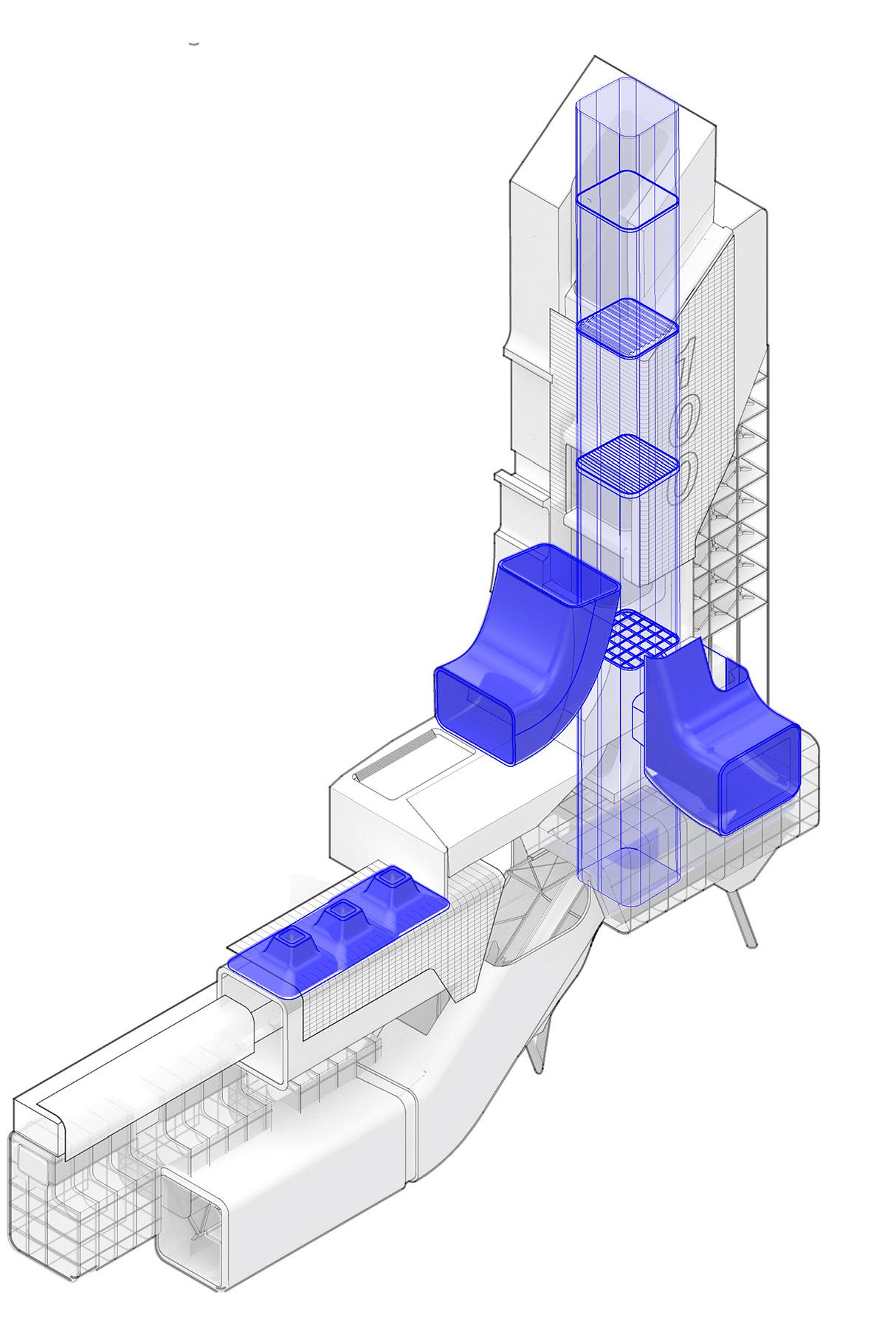 Toxic Enigmas is a large scale air filtration system and mixed use facility which activates one of the busiest highway intersections in Beijing, a city that faces one of the worst air pollution levels globally. This project aims to tackle air pollution through the introduction of an air-centric infrastructural typology within the city fabris.