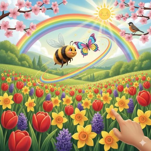 En el corazón de un bosque encantado, donde el rocío de la mañana brillaba como diamantes en los pétalos, vivía Lila, una intrépida hada de la primavera, con alas que danzaban con cada brisa y un vestido hecho de hojas jóvenes. Su misión era asegurar que cada rincón del bosque floreciera a tiempo para la gran Celebración de la Primavera. Pero este año, algo era diferente. Las semillas dormían más profundamente, los capullos se negaban a abrir y el Gran Sauce Sabio, guardián de la luz primaveral, parecía marchitarse lentamente. Lila, armada con su varita de polen y acompañada por su leal abeja, Zumbador, sentía la urgencia de actuar.