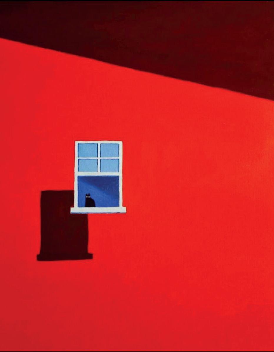 No sabemos bien qué es lo que está delante y qué es lo que está atrás. ¿Estamos más cerca de ese sol rojo que de los árboles? ¿Están esa balaustrada y esa vasija de piedra en primer plano o quizás están detrás de todo? ¿O está todo pintado sobre ese muro, y hay un agujero circular? Todo es posible.