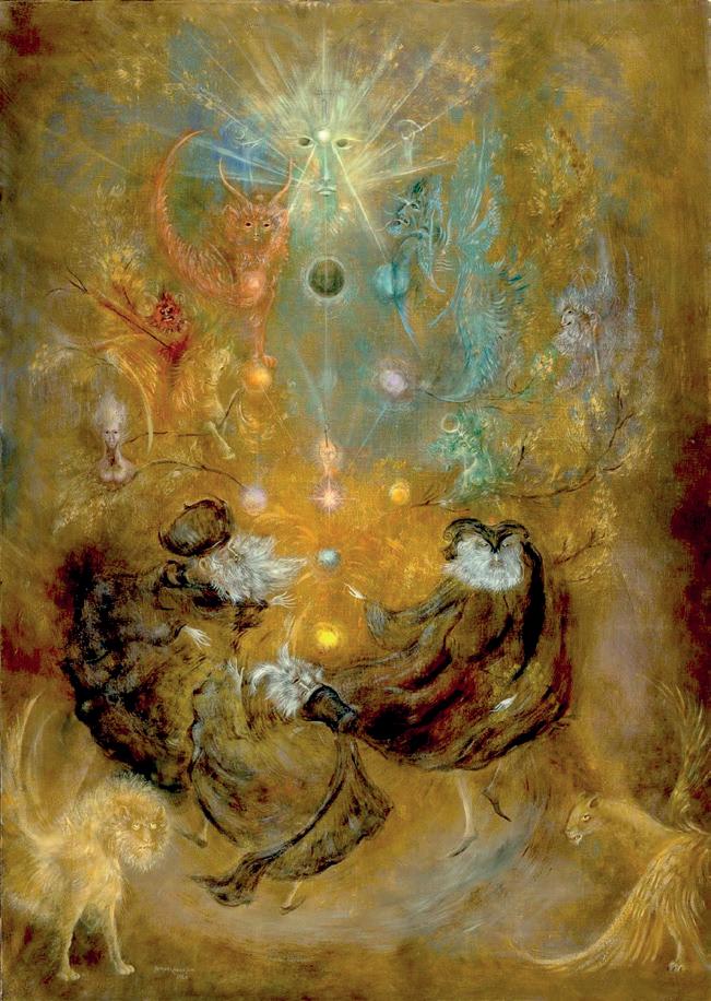 Max Ernst quiso representar en su obra el mundo de los sueños Fue un surrealista militante llevó este movimiento por todo el mundo. Para el, la parálisis ante un lienzo en blanco («complejo de virgen» se solucionaba de una forma muy sencilla: sacando material del subconsciente Artista impredecible, siempre siguió la línea de la tación. Nunca hizo lo que se esperaba de él y huyó de lo que él llamaba «la ceguera de la razón»