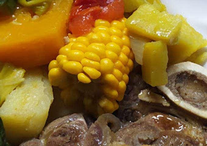 Un rico Puchero de Osobuco, ( este tipo de carne, también es conocido como morcillo, jarrete o zancarrón. Básicamente, se trata de un corte de carne de ternera transversal en el corvejón, que abarca desde la pantorrilla hasta la corva de la vaca. El nombre del osobuco, procede del italiano, y viene de la unión de hueso osso y agujero buco). También también se puede hacer con otros cortes de carne como ser falda , huesos de espinazo, marucha, o también con carne de gallina.