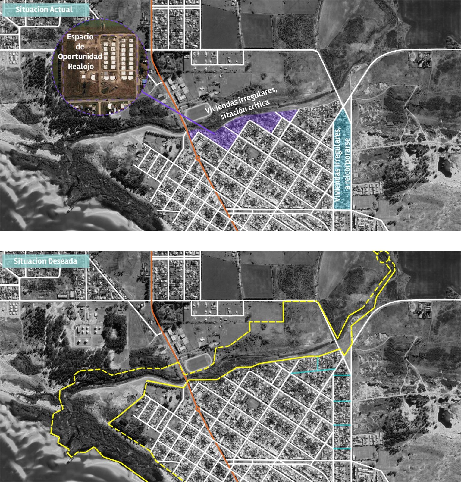 Se propone que las viviendas en condiciones de ser trasladadas a otro territorio, sean realojadas en predios de la Intendencia que estén cercanos, o adquirir alguna tierra próxima, con el fin de evitar que los usuarios sean afectados en su sentido de pertenenciaal sitio.