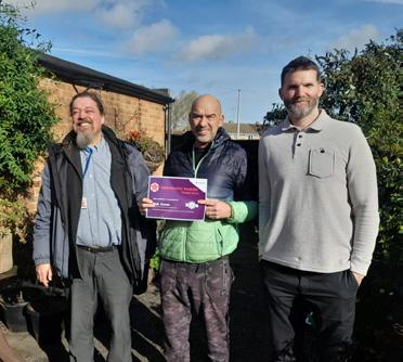 Our ‘Green Hero’ award for 2022 went to Rob for his keen gardening and amazing work to improve the communal spaces where he lives and encouraging other residents to get involved. He has arranged an impressive flower bed using one of our recycled bathtubs and made a little haven in the courtyard area of his block. In addition, Rob has supported our work with green spaces at Bearbrook Orchard and Hampden Gardens as well as Platinum Cycle Way. Mark Frayne-Johnson, Housing Services Manager, and Kevin Price, Caretaker Manager (pictured) hand delivered Rob’s certificate at the end of October to congratulate him. Iva Abbey, Community Engagement Officer added, “Working with Rob is an excellent example of how both residents and Fairhive succeed together to maintain and enhance our green spaces and communal areas for everyone’s enjoyment.”