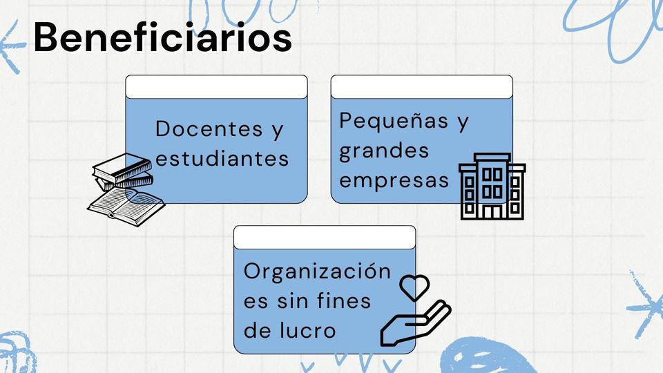 Beneficiarios directos que vendrían siendo el equipo de trabajo con el que este diseñando y el cliente o los clientes que estarán directamente beneficiados por la funcionalidad del proyecto. Y también están los beneficiarios indirectos que vendrían siendo las comunidades o público objetivo (jóvenes y adultos), personas que viven en la zona de influencia del proyecto que escoja.