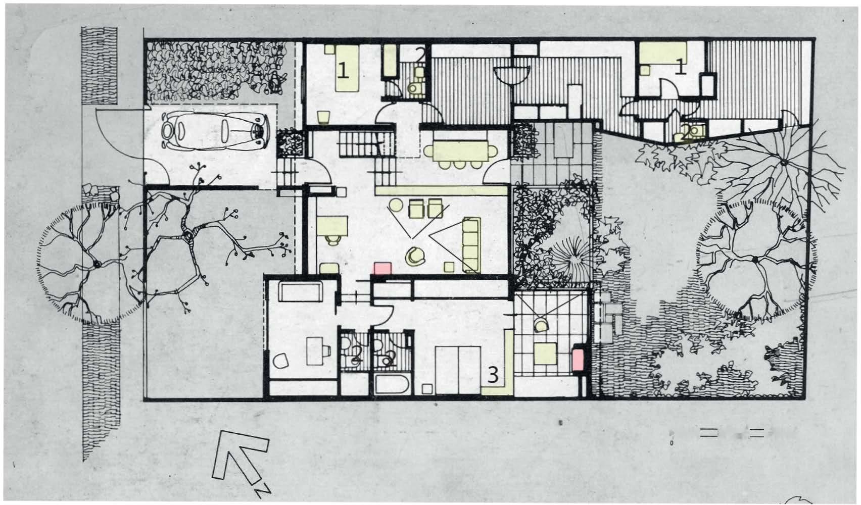 La casa Bertel cuenta con varios accesos. Uno de ellos ubicado entre el garaje y la Fachada del norte. Ademas, dos de estos Accesos están ubicados en la salas en las que Se encuentran ubicadas las chimeneas, el lugar del Fuego