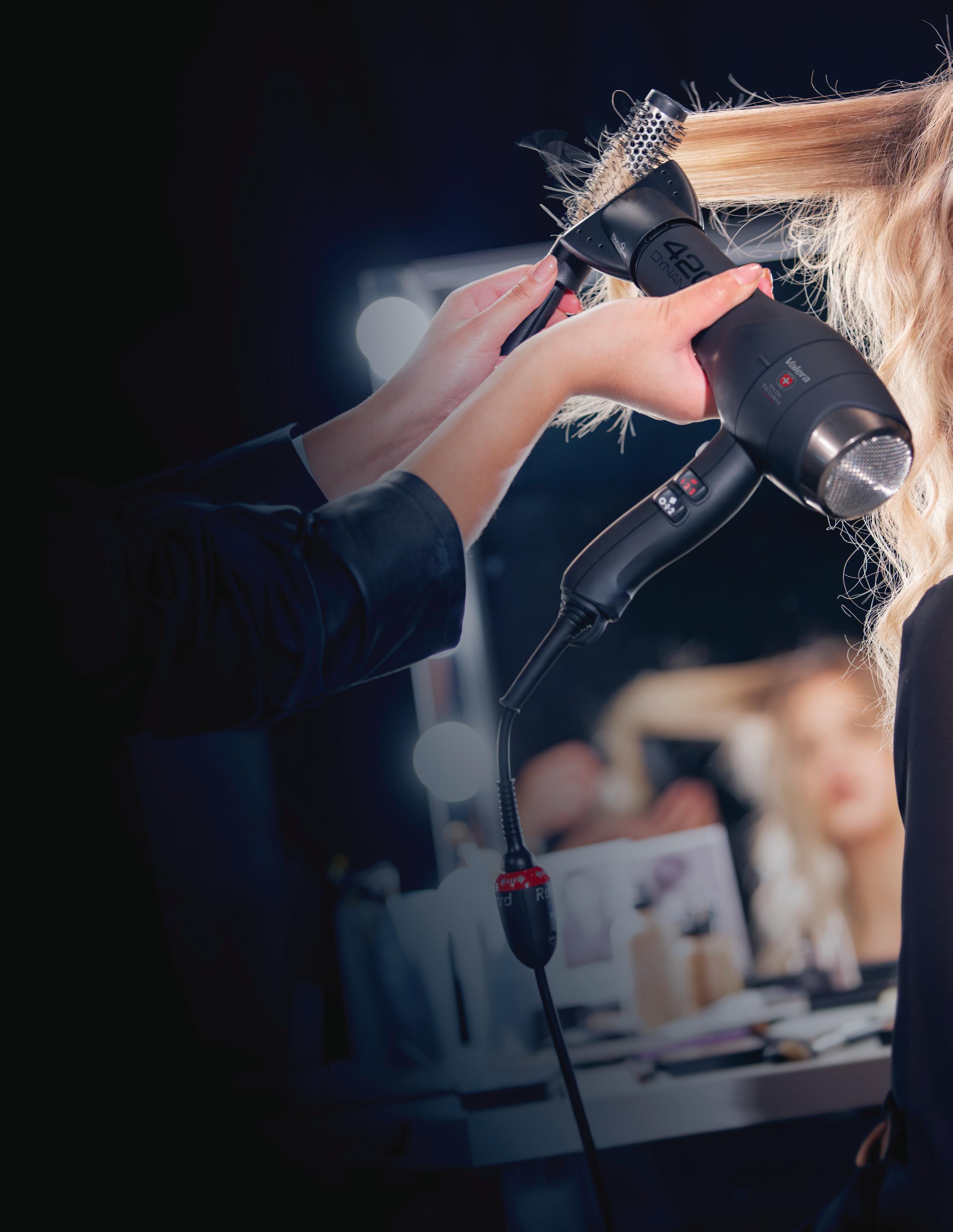 For those who prefer a medium size dryer, the UNLIMITED and MASTER PRO line have the right tools. An ideal balance and ergonomic handle reduce the stress on hairstylists’ shoulders, arms, hands and spine caused by repeated movements and one-sided postures.