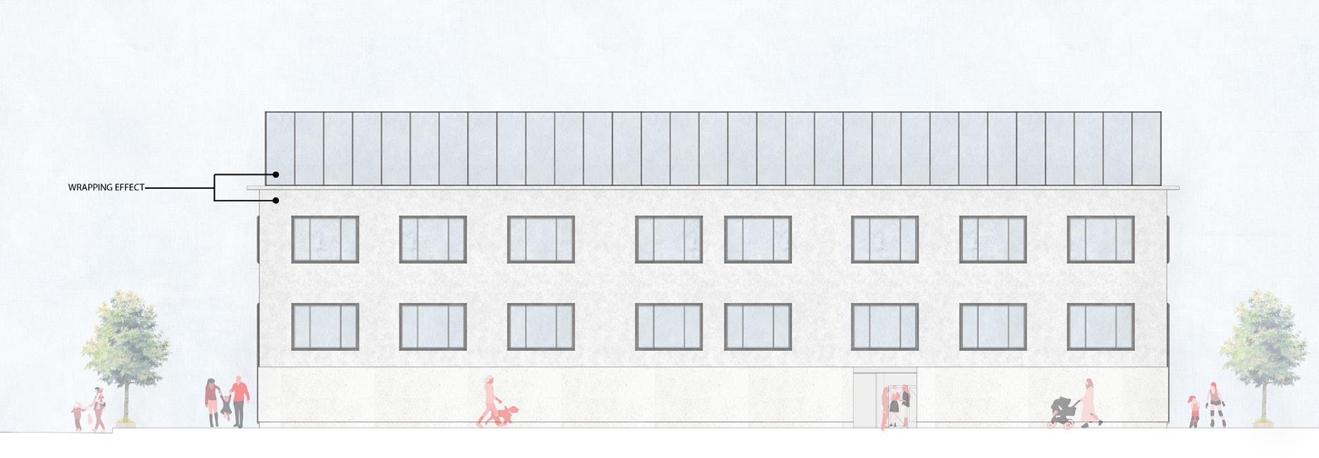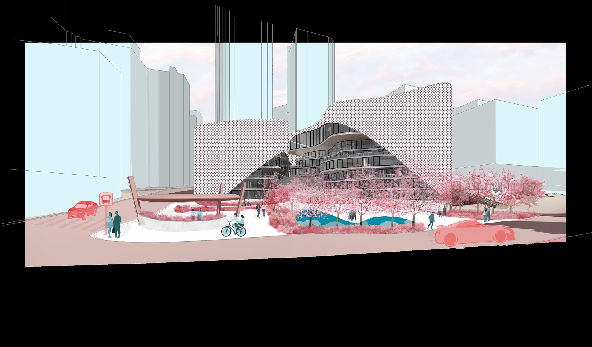 0.3 SPLITFIT OFFICE BUILDING SPRING -2022 EXTERIOR PERSPECTIVE: VIEW ACROSS THE STREET EXTERIOR
