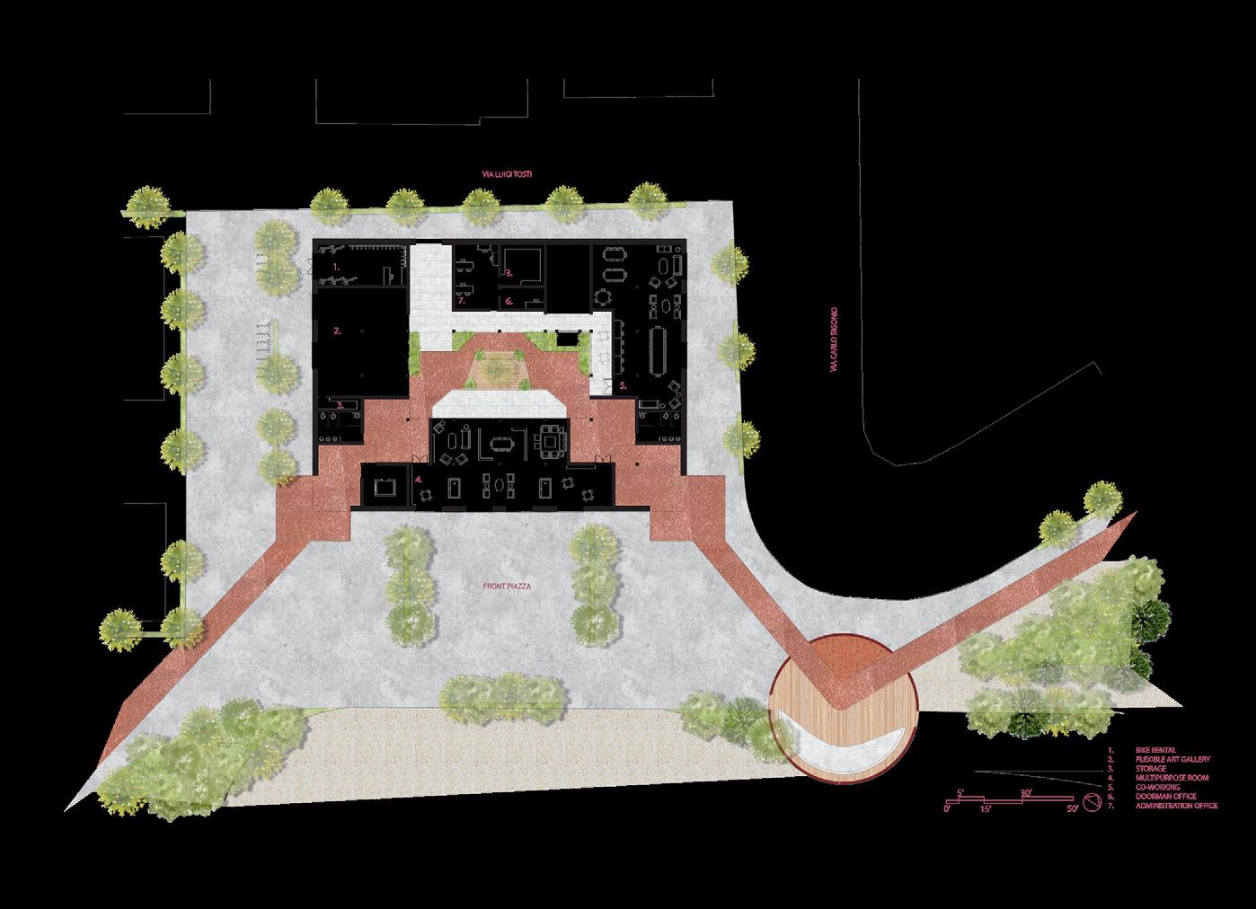 THE ADAPTIVE-REUSE DESIGN PROPOSAL FOR A BUILDING NESTLED IN A ROMAN RESIDENTIAL AREA BETWEEN VIA LATINA AND VIA APPIA AIMS TO BREATHE A NEW LIFE INTO THE SPACE BY SEAMLESSLY BLENDING ELEMENTS OF CULTURE, AND NATURE. FOCUSING ON URBAN DESIGN THAT ENCOURAGES INTERACTION WITH GREEN SPACES AND NEGLECTED AREAS, THE BUILDING’S LAYOUT IS METICULOUSLY CRAFTED TO CATER THREE TIERS OF PRIVACY AND ENGAGEMENT. INSPIRED BY LOCAL ARCHITECTURAL TRADITIONS, THE DESIGN PRIORITIZES ADAPTABILITY THROUGH A STRAIGHTFORWARD MODULAR APPROACH. A CENTRAL COURTYARD ACTS AS A COMMUNAL HUB,