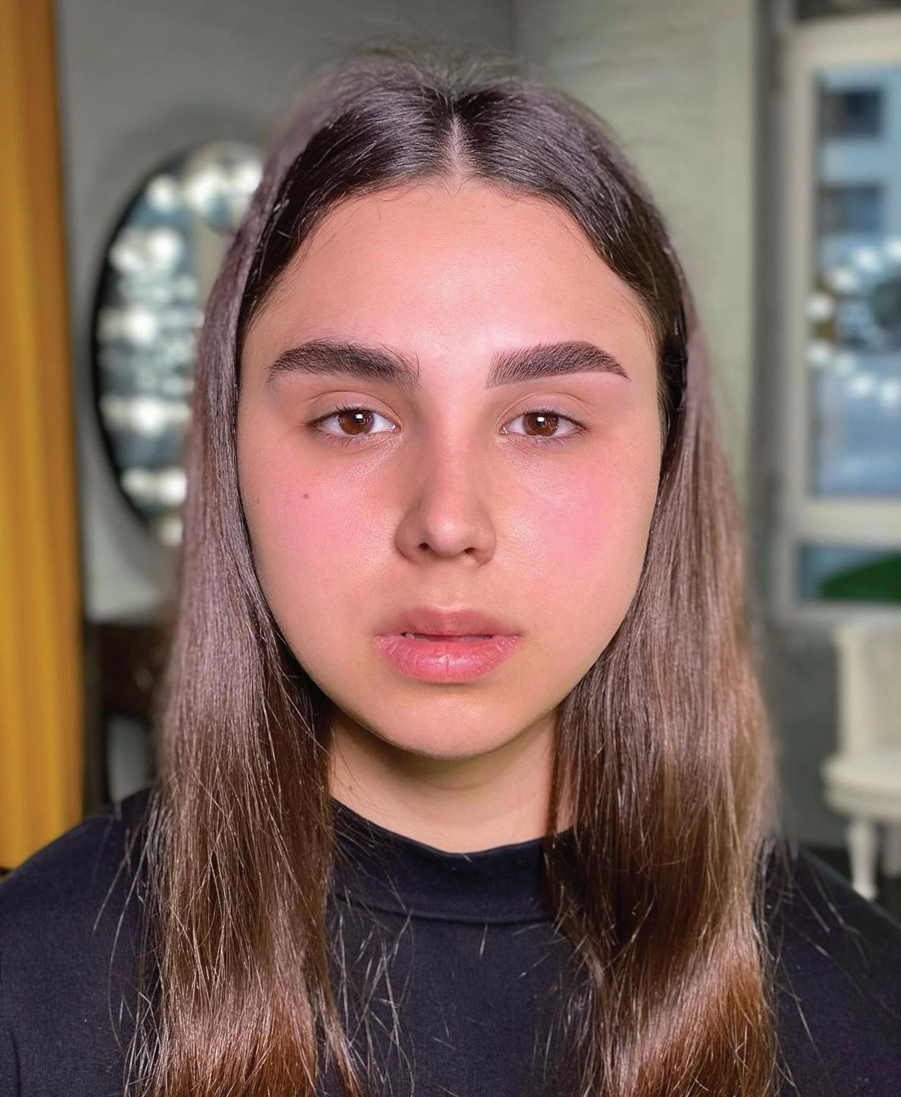 În imagine se observa ce mai închisă zona a sprâncenei. Vizual deranjează, rărirea se realizează anume în aceasta zona și se uniformizează culoarea. La vopsirea sprâncenelor întreaga zona va fi uniformă.