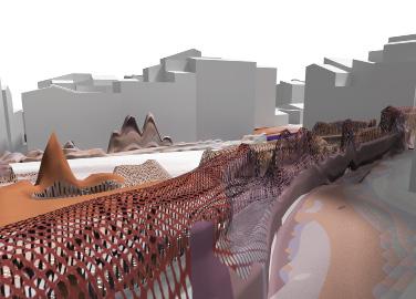 1 aree urbane coperte da ruderi grandi vuoti che allentano la compattezza urbana e ridanno una visione espressiva del paesaggio con la vastità di spazi percepibili slargo venezia il sistema maqueda strade piazze definiscono contesti morfologici corrispondenze|dipendenze Gli elementi costitutivi della sequenza di via Maqueda risultano connessi tra loro molteplicemente secondo gerarchie di vario ordine categorie, generando una maglia di relazioni di tipo architettonico, economico sociale. Il contesto via Maqueda è caratterizzato da uno spessore variabile lungo il suo asse poichè si genera come sovrapposizione al tessuto preesistente inglobando elementi eterogenei in un sistema che risulta omogeneo. p.zza s. onofrio p.zza appalto p.zza fonderia p.zza s.eligio p.zza s. andrea p.zza monte di pietà p.zza beati paoli p.zzetta caldomai pas. alla guilla p.zza garraffo p.zza garraffello slargovenezia p.zza caracciolo continuità interna tessuto poroso|compatto|alveolato|tortuoso che definisce la morfologia dei vuoti e dei pieni. Sono linee guida fondamentali che descrivono la solidarietà urbana tenendo insieme tutti i manufatti della città e facendo emergere l’identità del nucleo urbano sistemi di vuoti possibilità di metterli in relazione attraverso permeazioni che li reimmettano nel sistema pedonale rafforzando le relazioni tra contesti e il rapporto esterno|interno. intersezioni|gerarchie vengono indicate gerarchie di intersezioni tra il tessuto lungo la depressione dell’antico fiume Papireto, classificazione per importanza relazionale. pieni|vuoti strade e piazze definiscono contesti morfologici. Le strade sono gli assi portanti dei contesti e ne individuano le principali caratteristiche su cui si fondano le relazioni tra le parti; gli edifici costituiuscono i sistemi chiusi o aperti. Mercato Del Capo decodificazione delle immagini il centro storico si articola sul sistema dei mercati, i quali, offrendo forti occasioni di socializzazione, favoriscono contatti e scambi tra parti di esso. Forti elementi identitari del carattere della città. 1 1 la costruzione dell’asse Maqueda ha creato alterazioni del tessuto urbano, alterazioni che non sono riuscite a cancellare le caratteristiche della struttura morfologica più antica che viene coinvolta solo parzialmente dalla propensione all’ortogonalità dettata dalla nuova forma urbana interna. area “quaroni” saturazione Processo progettuale deformano generano forma dilatazione percezione centralità/marginalità centro/periferia intersezione regole della centralità regole della marginalità vuoti= emettitori di fluido [il colore descrive flussi d’identità] il fluido penetra nel tessuto rigenerandolo vettorializzazione nuovo flusso metafora fluidi rgb superficie pelle/pavimentazione grayscale volume struttura displacement map to polygons [il fluido viene cristallizato in forma] al grayscale gradient vengono associate una quota minima, studiata sull’orografia del luogo, e una massima sull’edificato, generando un intervallo all’interno del quale si sviluppa la forma 51,32 68,24 +17,2 +18,9