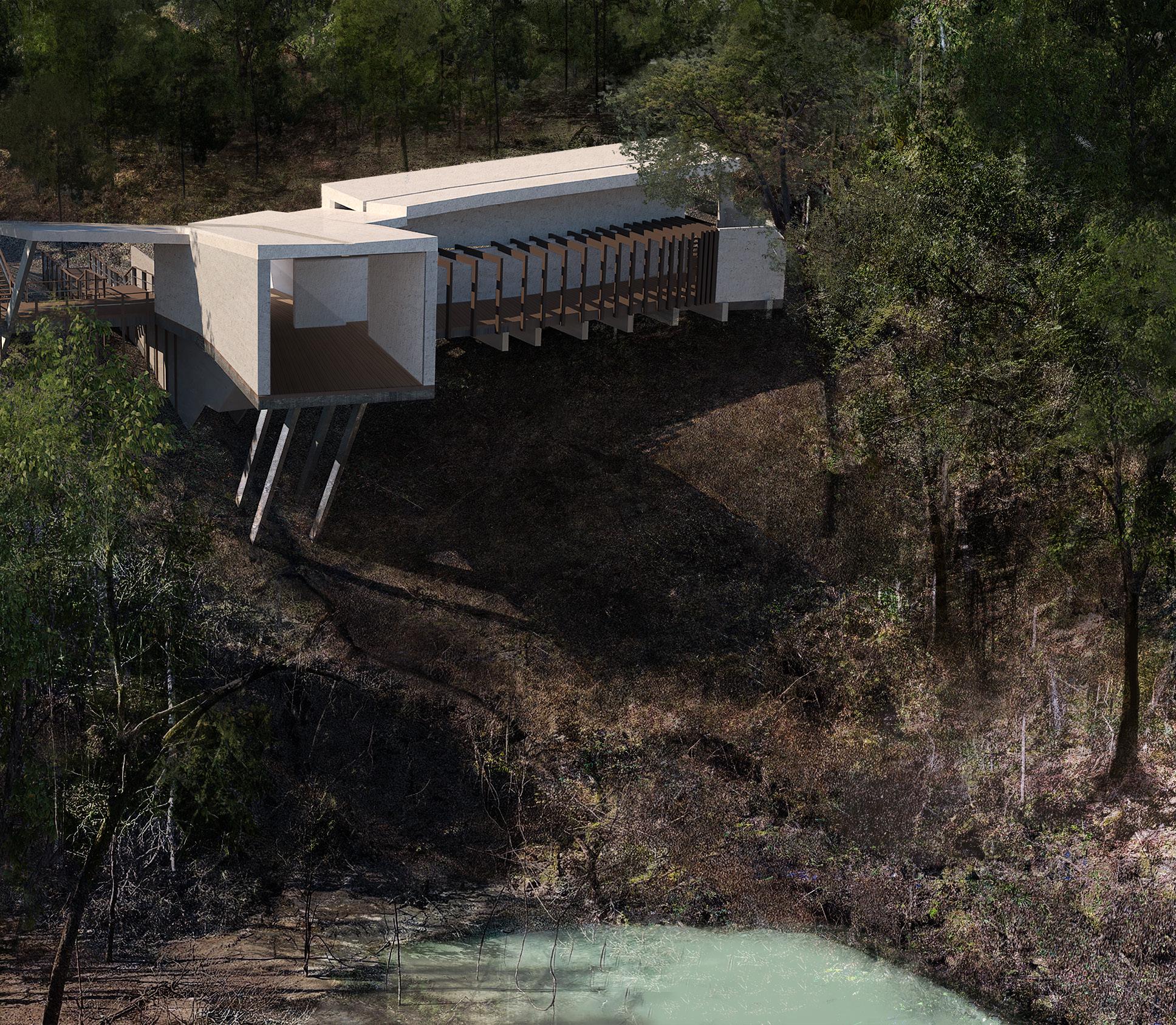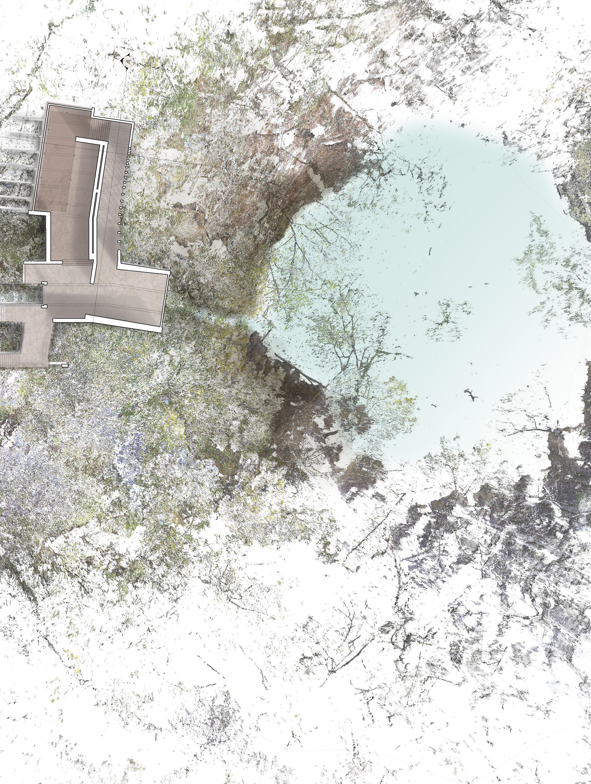 The predominant fixation of this project was morphing the structure as site. The site is a dialogue between earth and water, mediated through their offspringvegetation. This project had to be of the site, in the site, and about the site- all to enhance it. In a sinkhole, water serves as both the agent of chaos and of control, becoming the generation of the very environment it inhabits.