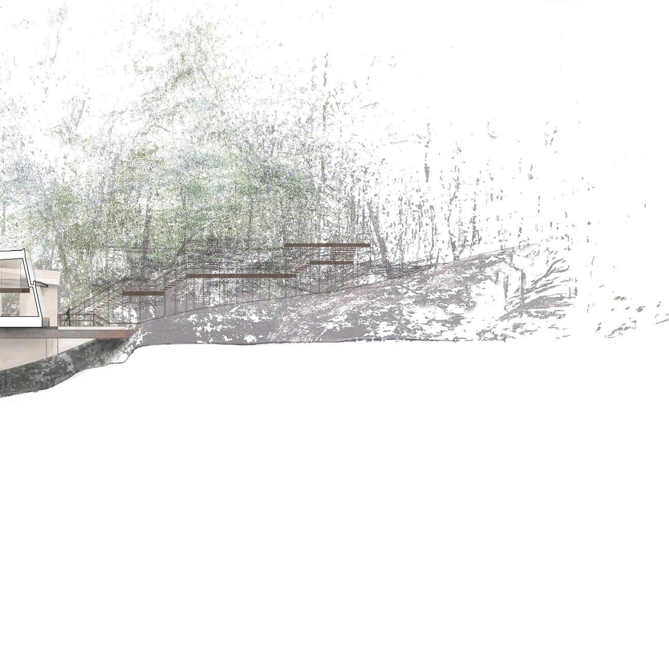 The middle level welcomes visitors to converse with the horizon, which begins to dissolve.