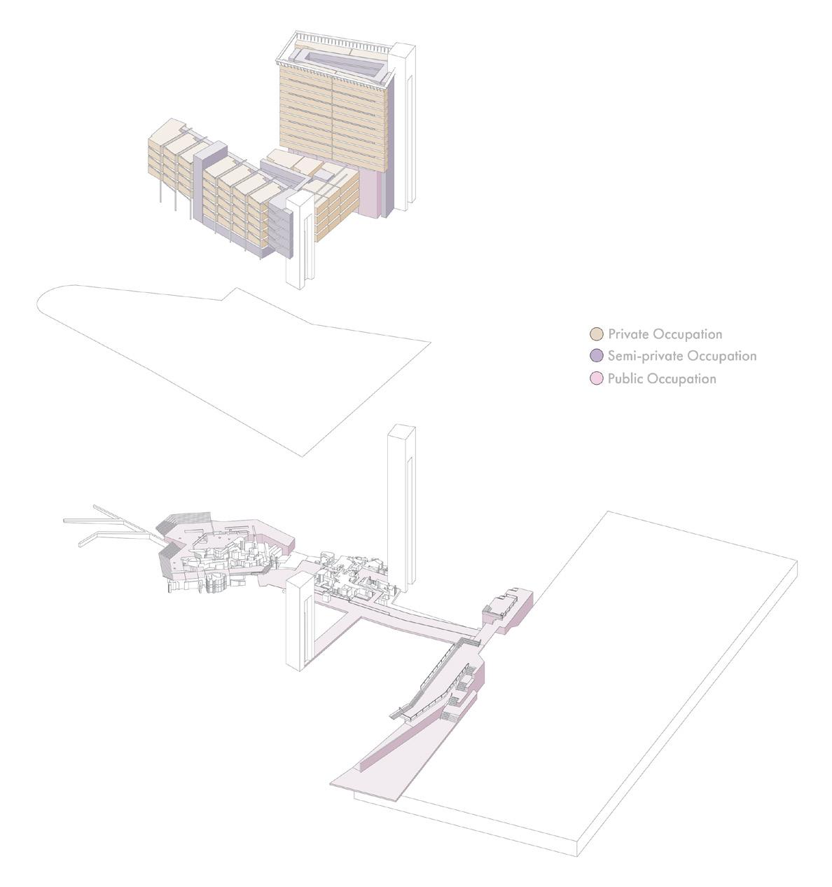 In any megalopolis such as Milan, an efficient transportation network is an absolute necessity. While most systems are fixated merely upon quantity transported, this project approached this issue from a qualitative perspective. Breaking transience into three categoriesresidents, travelers, and visitors- we tailored the base of our tower to each of their needs, tying it together as a cohesive system. These three disparate groups coexist in every transportation system, thereby they all ought to be accommodated.