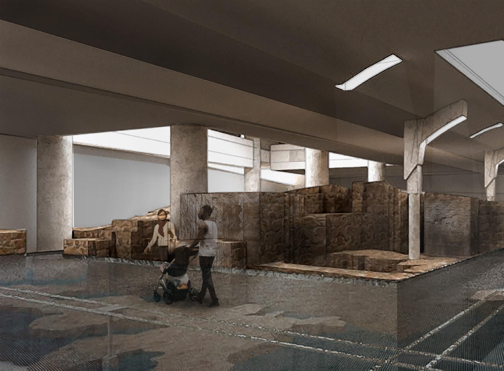 The historical weight of Rome demands a reverent architectural response. Beneath our site laid ruins- quite typical for Rome. Atypical is the integration of these ancient structures into functional modern spaces. The typical response is the cover up the ruins, or to merely leave them exposed. We had the obligation to mediate between the ancient Roman and the present Roman, as well as the convergence the future Roman will one day have. Engaging the dilapidated Tiber was also of immense importance to us- to restore its former role as a cultural and commercial center of the city. The water and people in the site are relatively temporary occupants, yet the ruins are eternal.