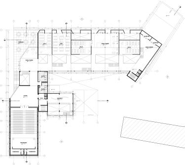 To regularize the spaces in the cultural center, I used the voids of the double-height buildings to unite the shape of the radii with the straight lines of the lot boundaries. This project was proposed in a fairly urban setting, and it was a challenge to try to create a distinct and educational environment for the children. I tried to add different types of textures to the floors as well to keep them entertained and learning. I also kept the entire area accessible because the main concept is always inclusivity.