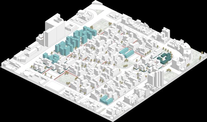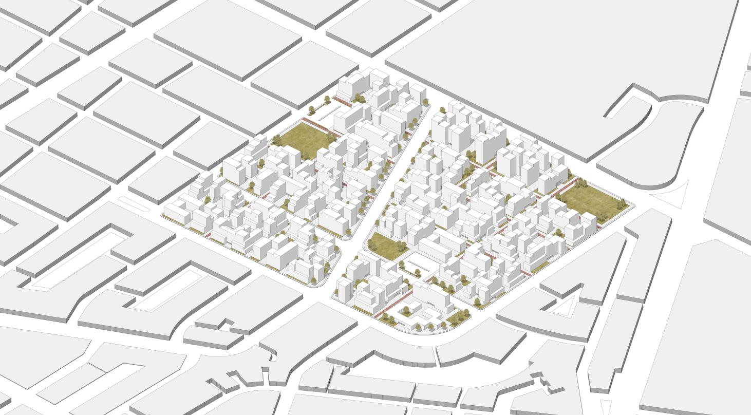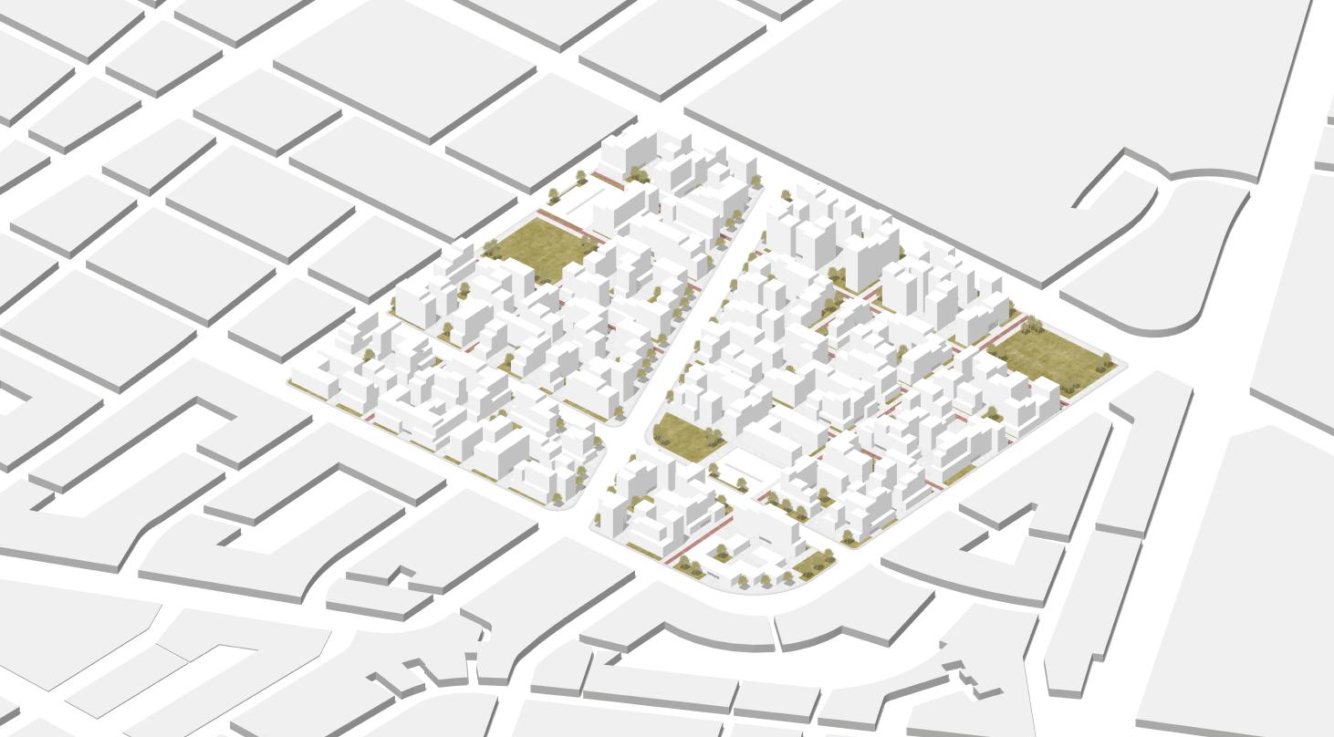 This project was for another university course. It involved developing an urban redevelopment proposal for a neighborhood in Surquillo called Casas Huertas. The design was based on the Open Block model and included offices, commerce, housing, education, and a market in its program. The challenge in this project was to better organize the neighborhood while maintaining the same housing density as currently available. The current problem with the chosen neighborhood is that it is too dense for the low-rise housing in the area. This leads to overcrowding and insecurity for residents. Furthermore, it lacks any green areas, and some streets are disconnected, creating dangerous alleys. In the proposal, I took advantage of the height to create wider, brighter streets with the same population density. I even added park spaces, which were necessary due to their lack in the area.