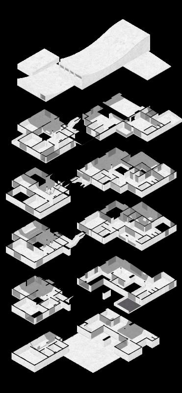 The design process followed the same steps as the previous project. In fact, this was the first project where I attempted this process, and I realized it was the most comfortable way to design for me. With the completed project, I can compare the first intentional cut with the final hinged cut. It undoubtedly maintains the spatial quality, but has several changes that improve accessibility and circulation within the building