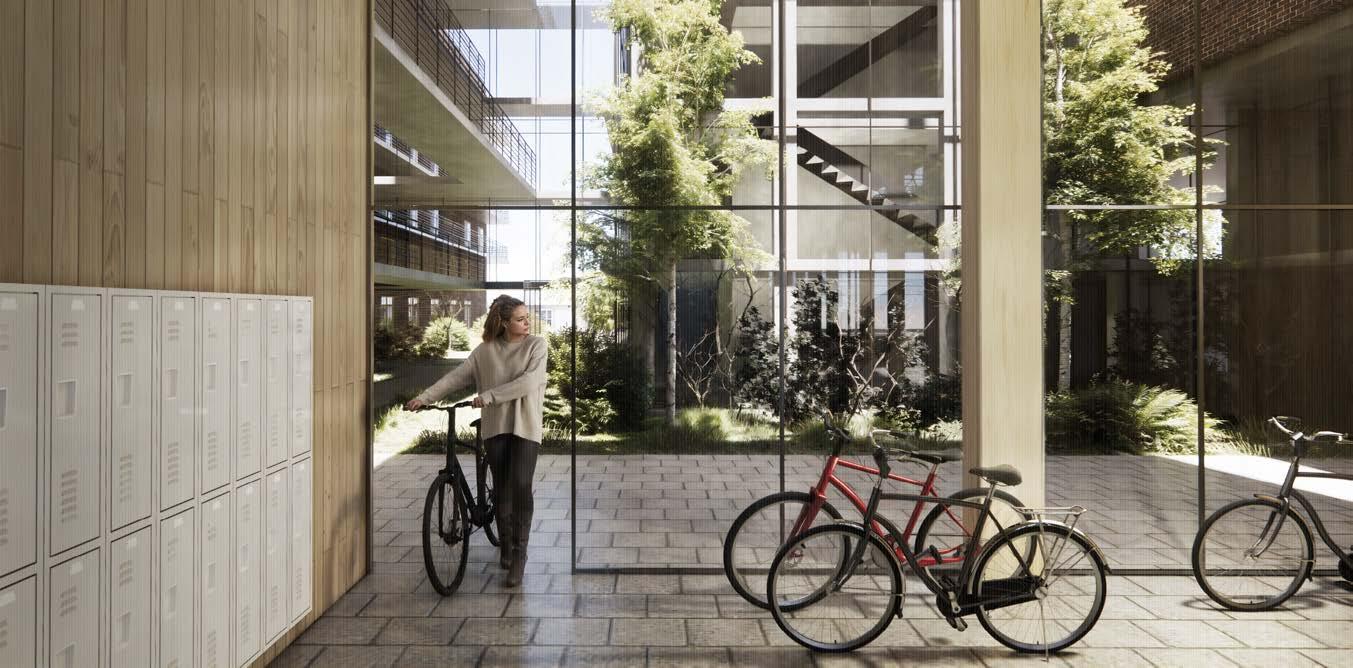 The design of 9019 Rainier responds directly to its surrounding context, relating to the residential scale and character of the southern portion of the site through use of massing porosity, outdoor walkways, wood siding, and gable roofs. Then the teen housing massing resembles a more institutional brick mass with the urban, active intersection to the north. These forms are separated by green spaces and courtyards, which provide opportunities for passive solar heating and enhanced quality of life. The central lobby and amenity spaces create a welcoming entrance, while defensible courtyards help foster a sense of community and connectivity.