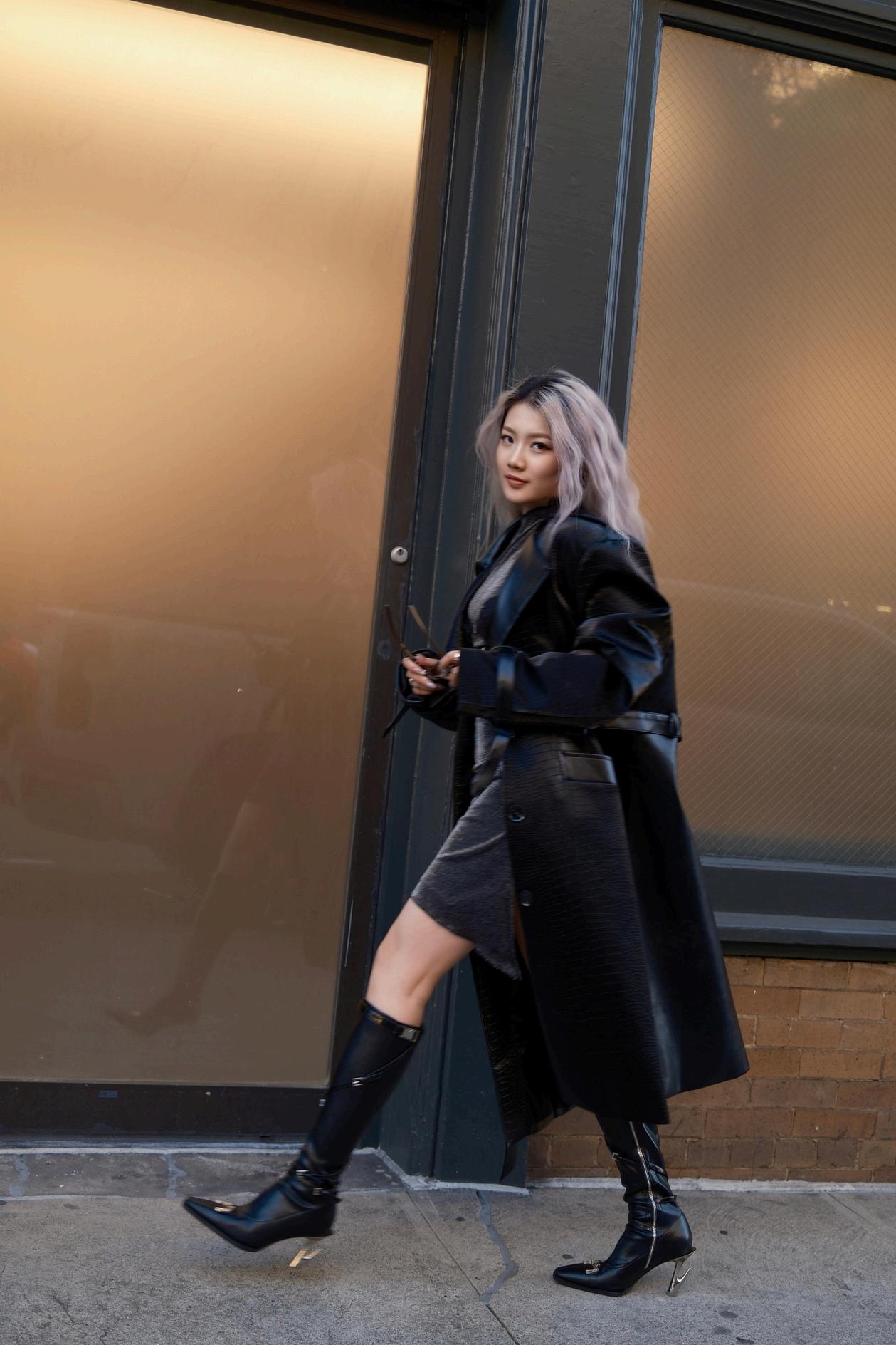 Dressed in layered black leather and metallic shimmer, she blurs the lines between street edge and feminine power. Every glance, every motion, captures the duality of the modern woman: sharp yet soft, fierce yet poised.