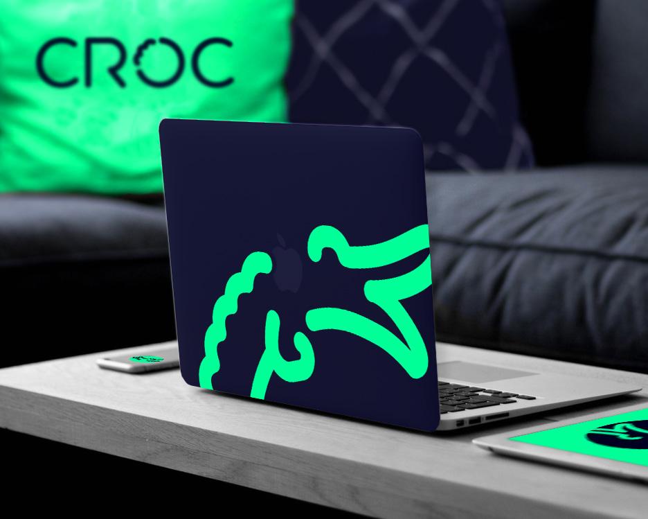 Se partió abstrayendo la silueta de un cocodrilo de perfil + buscando la similitud con la letra "C", luego se reencuadro la cabeza dando como resultado el isotipo.