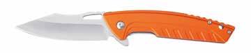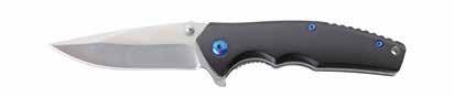 Lama 76mm in acciaio inox satinato. Impugnatura in materiale composito G10 (fibra di vetro e resina epossidica) ad alta resistenza.