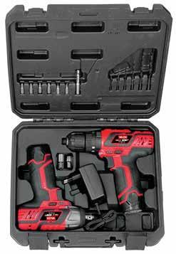 12V. Fornito in kit con valigetta. Trapano:2 velocità meccaniche. Mandrino autoserrante singola ghiera ø10mm. Luce led. Avvitatore impulsi: momento di torsione 100Nm. Attacco 3/8". Con adattatore 3/8" - portainserti e adattatore 3/8" - 1/2". Con 2 batterie 2Ah e un caricabatteria. 6 punte e 6 bits e adattatore inclusi.