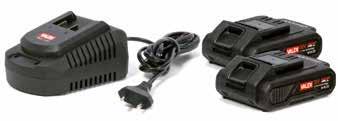 Batteria da 2Ah e caricabatterie da 1,5A.