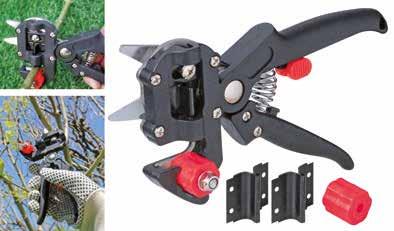Per innesti di piccolo diametro. Battente in materiale plastico per salvaguardare l'affilatura dei coltelli. Forbice integrata per piccole potature.