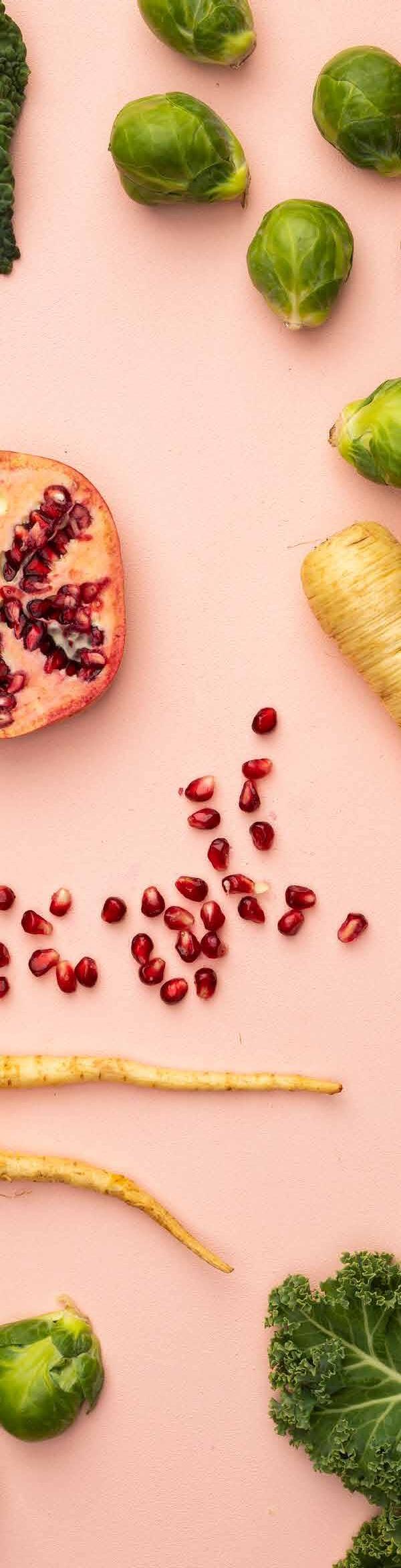 ”Granaattiomenan punaiset siemenet toimivat visuaalisesti etenkin vihreiden raaka-aineiden kanssa. Mausta granaattiomenan siemenillä makuvedet, viimeistele salaattiannokset tai tarjoile alkuruokana paahdetun vuohenjuuston kanssa.”