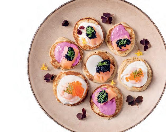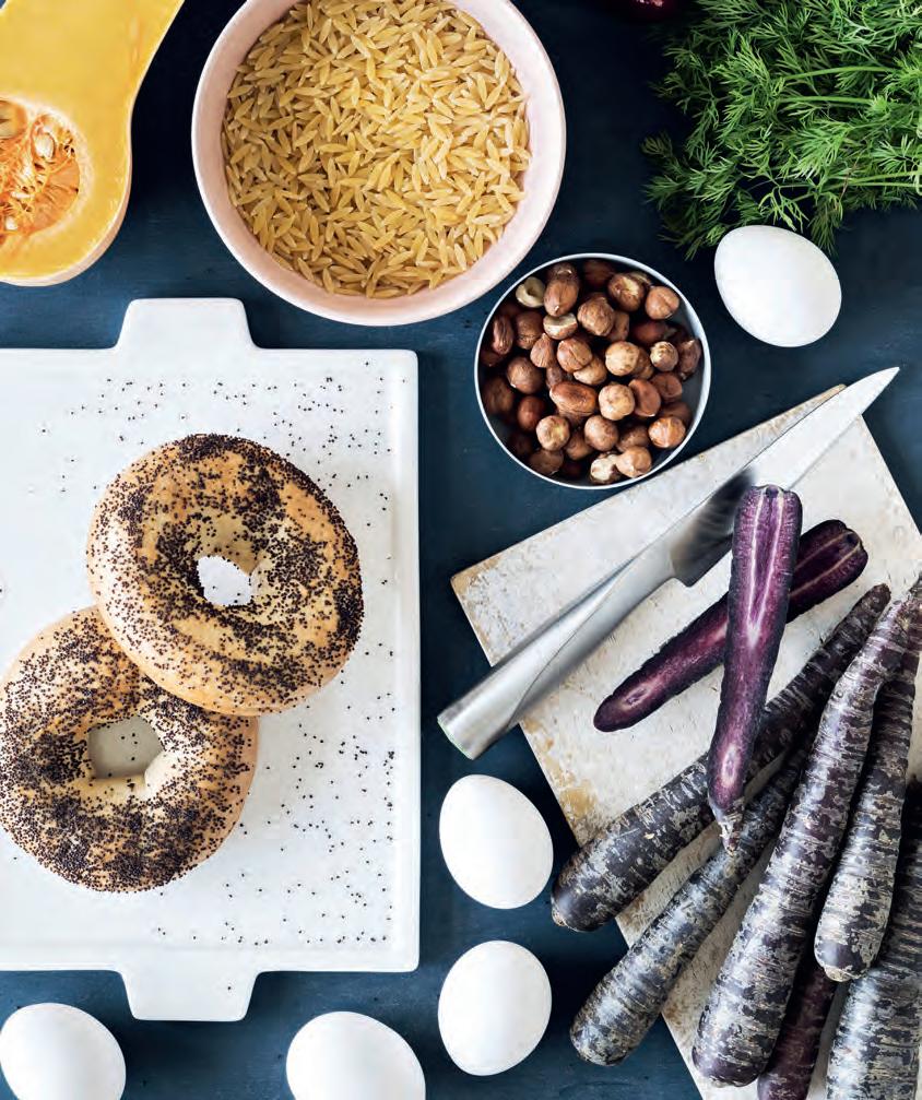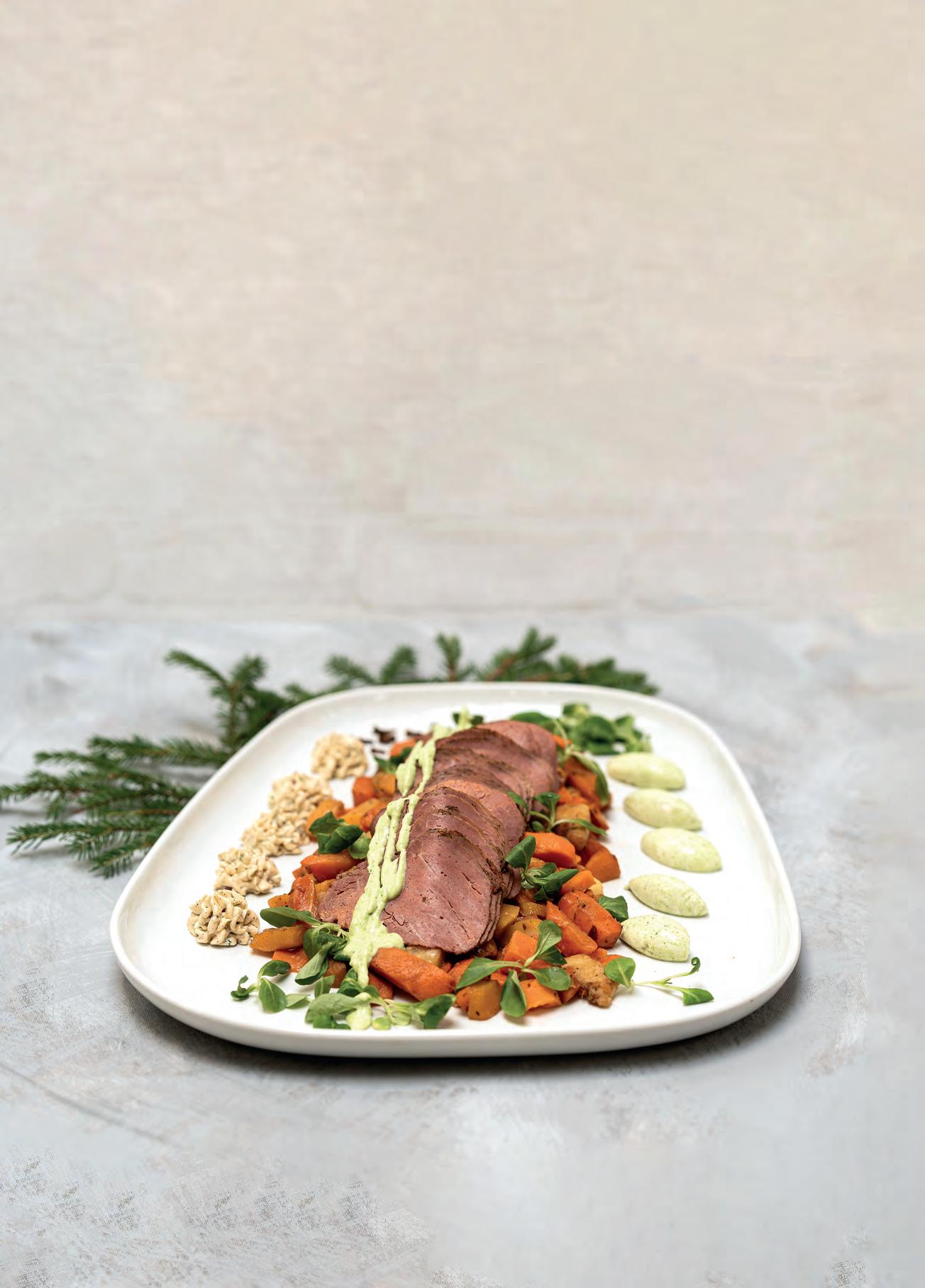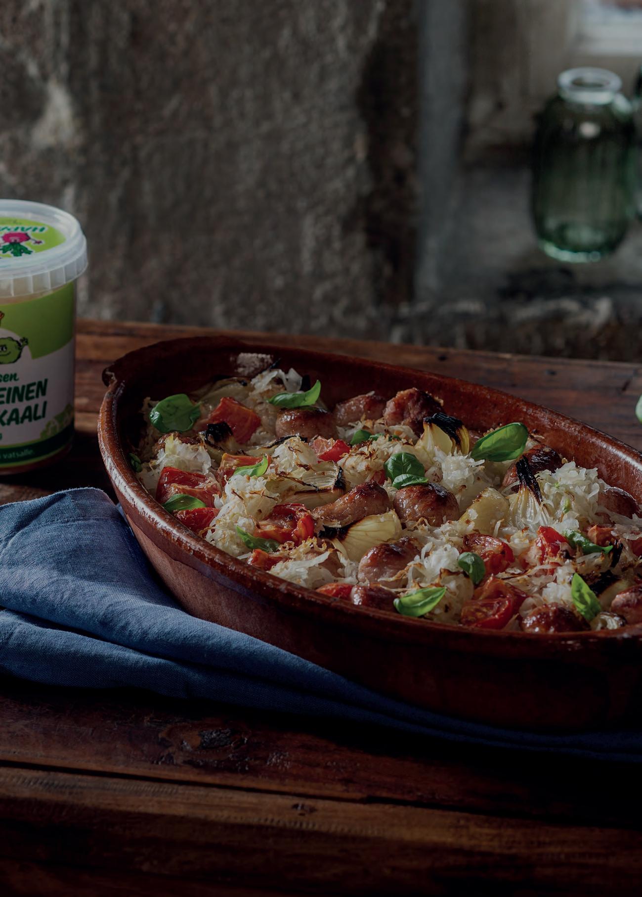 Miltä kuulostaisi esimerkiksi kurpitsaorzo ja karamellisoidut porkkanat (s. 4), piparkakkutiramisu (s. 20) tai vegaaniset blinit, jotka tarjoillaankin mädin tai lohen sijaan savutofuskagenin kanssa ( s. 30)?