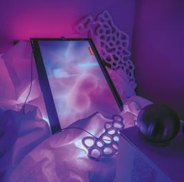 inspirowanym serią Lenovo Aura Edition – Yoga Slim 7i i ThinkPad X9. Intymna przestrzeń, wypełniona kryształami i subtelnym światłem, pozwalała zajrzeć w to, co na co dzień niewidzialne.