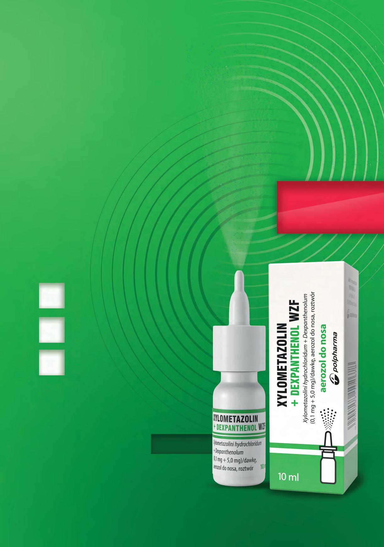 dardowych preparatów obkurczających. Dekspantenol poprawia gojenie się ran, zatem minimalizuje prawdopodobieństwo wystąpienie tego typu działań niepożądanych. Komplementarność przejawiająca się w działaniu tych dwóch substancji sprawia, że preparat będący ich połączeniem jest odpowiedzią na wszystkie potrzeby pacjenta w okresie przeziębienia związane z leczeniem nieżytu nosa – chory odczuwa zmniejszenie wycieku z nosa i szybką poprawę jego drożności, a jednocześnie jego błona śluzowa jest lepiej zabezpieczona przed uszkodzeniami i związanymi z tym uczuciem pieczenia, suchości czy krwawieniami z nosa. Synergizm działania preparatu złożonego z ksylometazoliny i dekspantenolu w leczeniu objawów ostrego nieżytu nosa został potwierdzony w badaniach klinicznych. Istotnie, po 5 dniach 47% pacjentów zostało wyleczonych po zastosowaniu leczenia skojarzonego w porównaniu z jedynie 1% po zastosowaniu monoterapii ksylometazoliną.