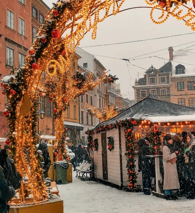 A seasonal open-air market filled with festive stalls, crafts, and winter flavours.