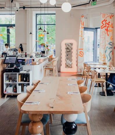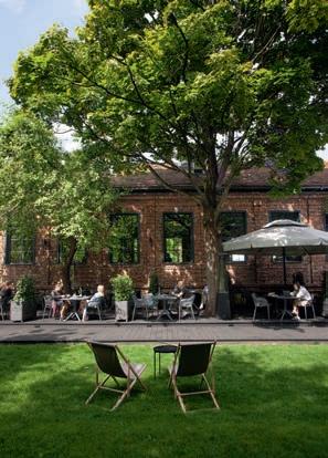 Enjoy a delicious moment of oblivion with a light lunch, an exquisite dessert, crafted refreshing cocktails and your favorite co ee, at the cosy summer terrace with a view over a green park.