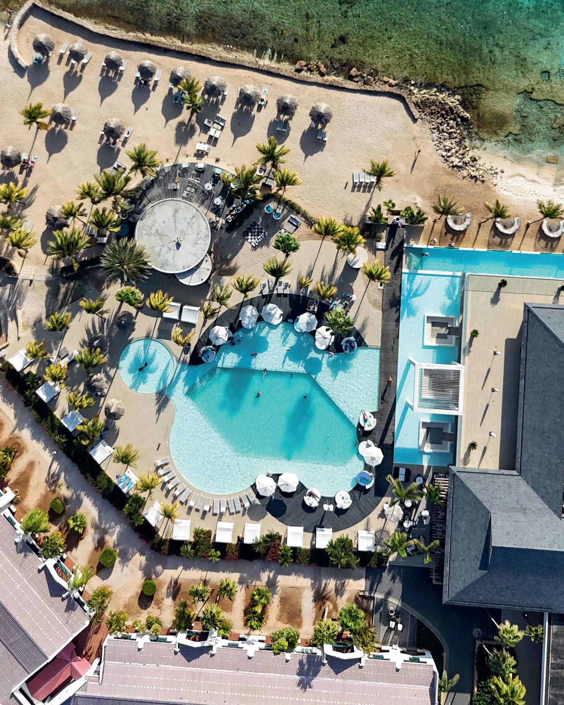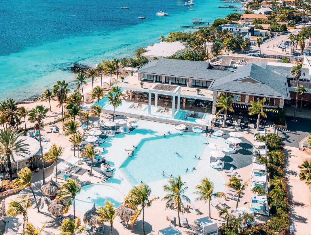 Le Plaza Beach & Dive Resort Bonaire a été considérablement rénové et agrandi, pour des vacances encore plus luxueuses. Dès votre arrivée, le nouveau bâtiment principal vous accueille avec chaleur et élégance et, dans le hall, vous serez saisi par la hauteur vertigineuse d’une cascade majestueuse. Le bâtiment abrite plusieurs salles idéales pour organiser conférences ou mariages, dont une salle panoramique o rant une vue à 360° sur la mer des Caraïbes ! Côté hébergement, de nouveaux types de chambre ont été ajoutés : appartements et penthouses avec plusieurs chambres et salles de bains. Mais le plus époustouflant vous attend à l’extérieur : une magnifique piscine surplombant la plage et l’océan. Installez-vous sur les canapés lounge à l’ombre des palmiers, savourez une boisson rafraîchissante au bar Palm Beach… et laissez-vous porter par les sets chill d’un DJ. Pour une détente absolue, plongez dans la piscine à débordement qui surplombe la plage et l’océan.