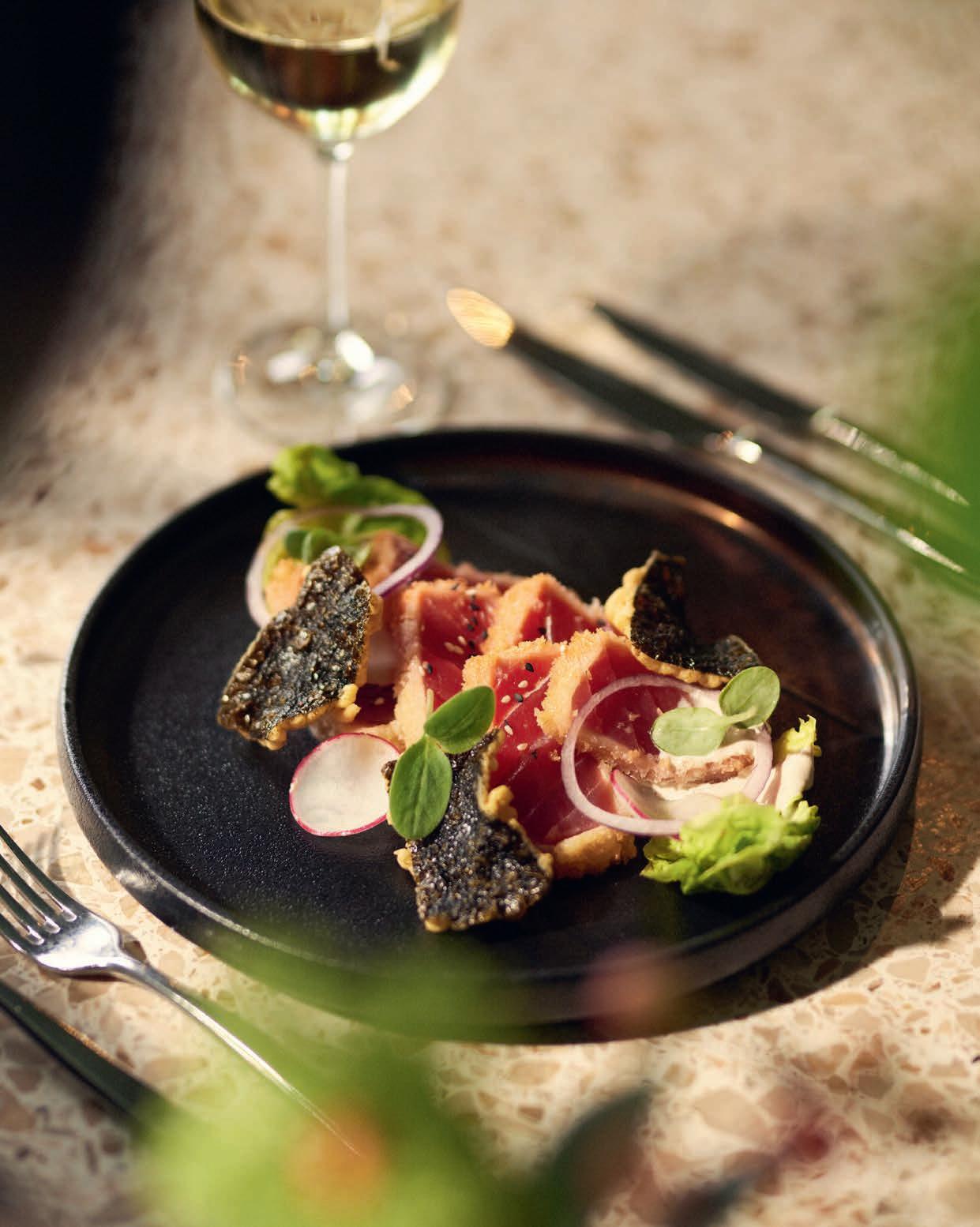 noch heute an den originalen Gewölben sichtbar ist. Dieses stimmungsvolle Restaurant ist sowohl bei Hotelgästen als auch bei Einheimischen sehr beliebt und serviert eine fein abgestimmte Mischung belgischer und französischer Küche. Burgundischer Genuss in seiner schönsten Form! Im Außenbereich lädt die renovierte Terrasse zum Verweilen ein – am besten mit einem guten Glas in der Hand. In den Sommermonaten sorgt ein DJ für entspannte Vibes – fast wie in Saint-Tropez.