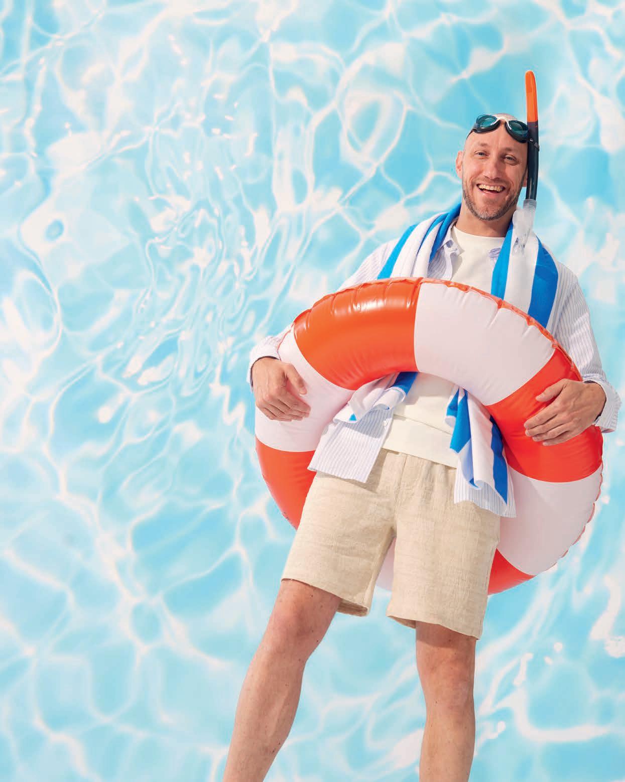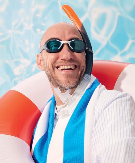 alles willen, maar ik wil natuurlijk niet geblesseerd raken. Mijn instelling is met alle sportlessen die ik geef: ik wil dat je doet wat je zelf aankunt. Ik probeer tijdens de lessen ook altijd een gezonde dosis humor in te brengen, want sporten moet vooral leuk zijn. Tijdens mijn revalidatie ontdekte ik een liedjes-app. Dat leek me geweldig voor de zwemlessen van de kinderen. Ik heb toen zelf tekstjes geschreven – die schudde ik zo binnen vijf minuten uit mijn mouw –en speelde die op een lekkere beat tijdens de les af. Ja, ik ben misschien ook wel een gezonde dosis gestoord. Zo blijft het plezier erin!’