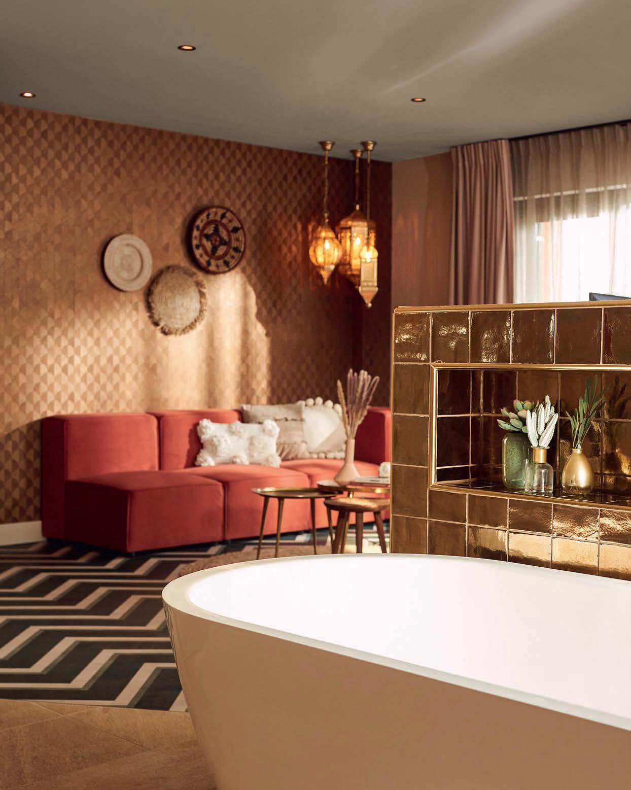 Auch in Bezug auf die Zimmer haben die Gäste eine große Auswahl: vom Comfort-Zimmer bis hin zu einer LuxusSuite, Familienzimmern und sogar zwei komplett eingerichteten Ferienhäusern. Ideal also für die ganze Familie. Ohnehin gefällt dieses Hotel Kindern ganz besonders gut, denn wo sonst schläft man so nahe am Wald, wo man Abenteuer erleben kann? Wenn Sie den Aufenthalt für die Kinder noch unvergesslicher machen möchten, lassen Sie sie im Kids Land Rover fahren – eine Garantie für big smiles! Ein weiterer Pluspunkt dieses Hotels ist, dass ein großer Teil der Zimmer über einen Balkon oder eine Terrasse verfügen, sodass Sie im Freien die Umgebung genießen können. Das tun Sie auf jeden Fall auch im Wellness-Garten. Dieser von Hecken umgebene Garten ist eine grüne Oase der Ruhe mit einem Mini-Spa, Sprudelbänken und Saunahäuschen. Das Außenschwimmbad ist mit dem Innenschwimmbad verbunden, an dem auch Entspannungsbetten stehen. Wer sich draußen noch nicht genug ausgetobt hat, kann im Fitnessstudio des Hotels, das rund um die Uhr geö net ist, trainieren.