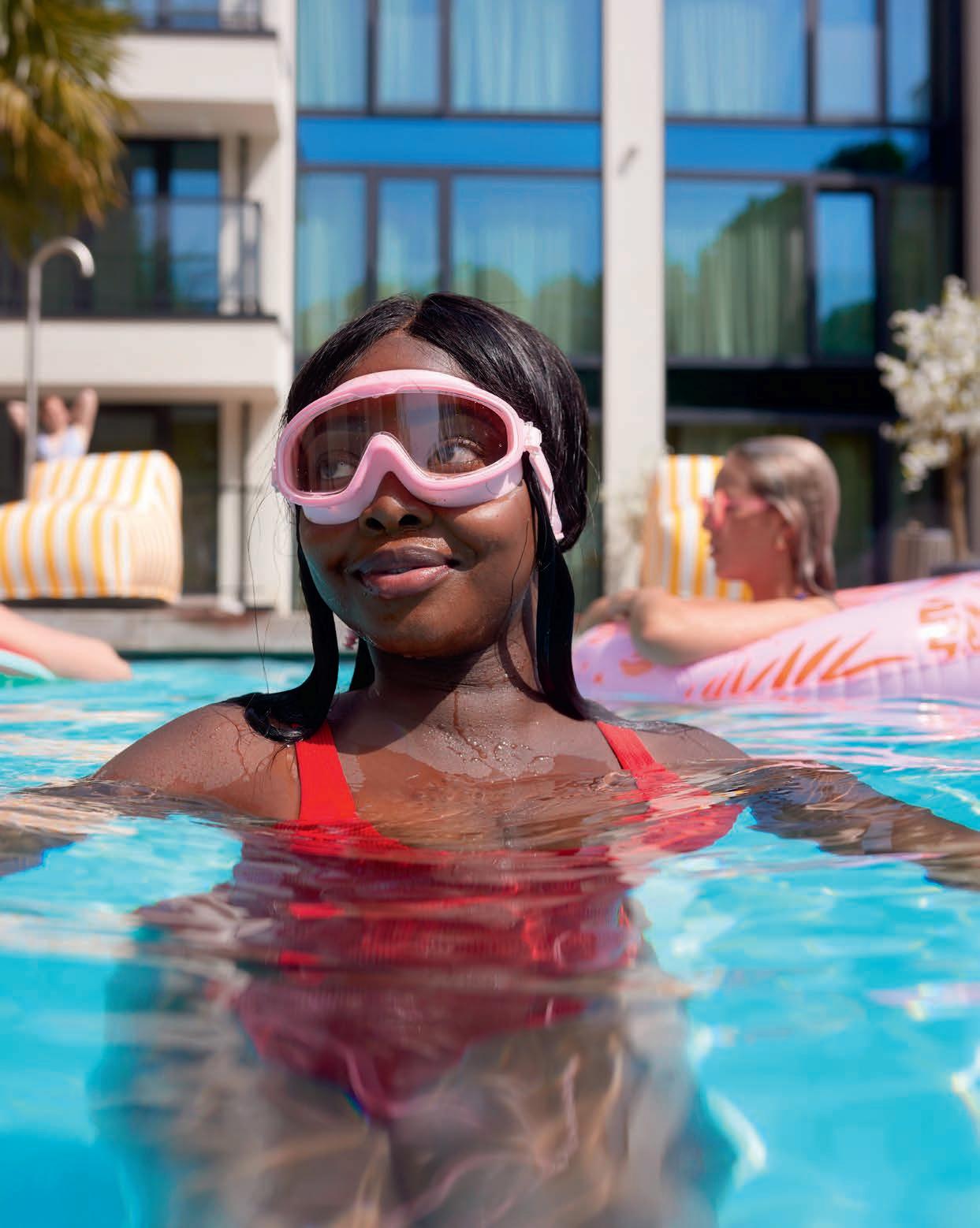 Jahren in den Niederlanden, aufgewachsen bin ich aber auf Curaçao. Bis zu meinem sechzehnten Lebensjahr habe ich auf dieser sonnigen Insel gelebt. Als Kind habe ich immer am Strand gespielt und auch in meiner Jugend war ich immer gerne am Meer. Viele Jahre lang hegte ich den Wunsch, irgendwann einmal selbst ein Van der Valk-Hotel zu führen. Dass dieser Traum vor drei Jahren Wirklichkeit wurde, ist für mich immer noch kaum zu fassen. Gemeinsam mit meinem Mann Tijmen leite ich das Van der Valk Palace Hotel Noordwijk, gerade einmal 150 Meter vom Strand entfernt. Ich finde es ganz besonders, dass unsere Kinder jetzt wie ich damals nah am Strand aufwachsen können. Noordwijk ist stolz, seit vier Jahren die europäische Auszeichnung als Heilbad zu tragen. Eine weitere Bereicherung für unser Familienunternehmen ist das neue Hotel Spa in der beliebten gleichnamigen Stadt in Belgien, die für ihre Thermen bekannt ist. In dieser Ausgabe stellen wir auch einige Hotels mit einem wundervollen Pool vor, darunter Hotel Nivelles-Sud und Hotel ApeldoornDe Cantharel. Ein Magazin voller Inspiration für einen großartigen Sommer.