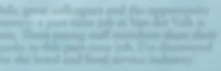 zelfstandig. Sowieso wordt bij Van der Valk al snel verantwoordelijkheid aan je gegeven, daar leer je veel van. Zo kan ik mijn eigen draai aan het werk geven. Bovendien kan ik in het café de lekkerste cocktails voor de gasten maken, dat is echt mijn specialiteit. Ook heb ik het erg gezellig met mijn collega’s. We gaan na werktijd vaak samen even op het terras zitten en ook zien we elkaar af en toe buiten het werk om. Het voelt echt als een grote familie. Als ik genoeg heb gespaard, wil ik graag een eigen auto kopen. Ik ben pas net begonnen met mijn rijlessen, dus ik heb gelukkig nog even de tijd om daarvoor te kunnen sparen. Wanneer ik klaar ben met mijn opleiding, zou ik wel mijn eigen restaurant willen openen. En misschien later zelfs een eigen hotel. Maar voorlopig werk ik nog met veel plezier bij Hotel Breda.’