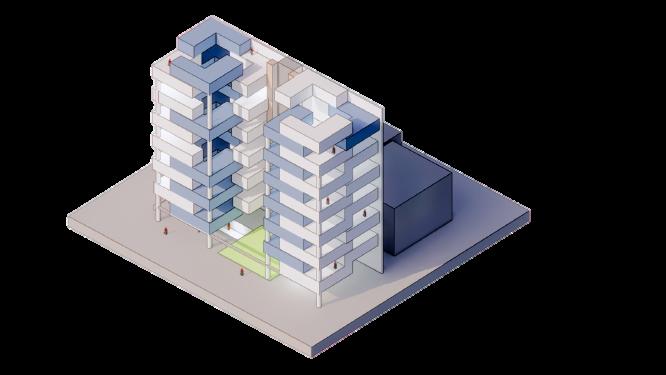 Es vital poder conservar el perfil urbano de la zona y no interrumpirla, por ello extraemos los elementos de las fachadas y las reinterpretamos