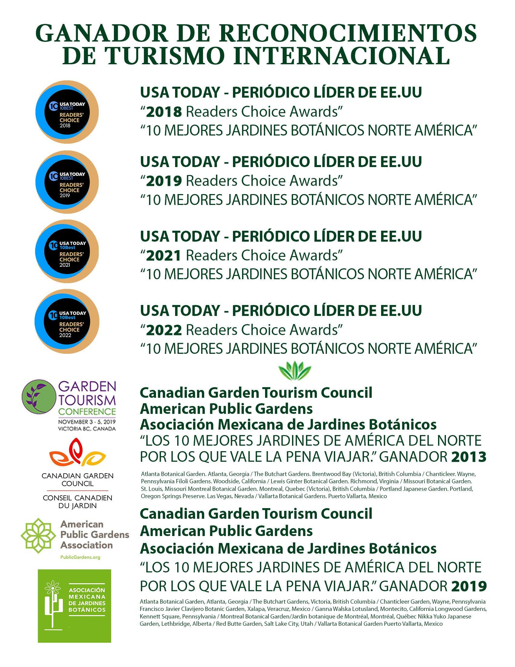El Jardín Botánico de Vallarta figura entre los más famosos e importantes jardines públicos de Norteamérica, y es el primer jardín fuera de EE.UU. que gana este premio.