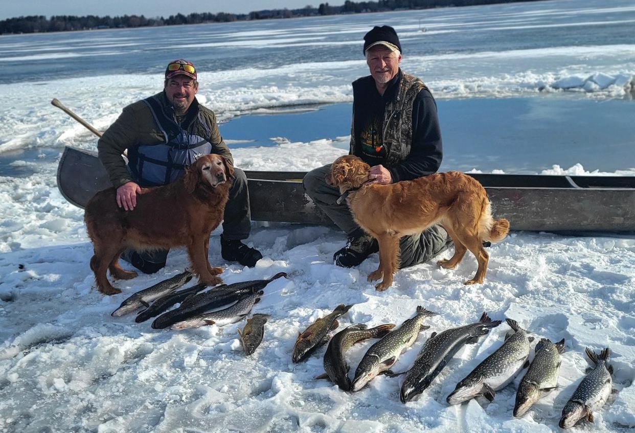 Photo contributed by Mark Walters Doug Cibulka and Jeff Moll with a nice catch of northern pike and walleye.