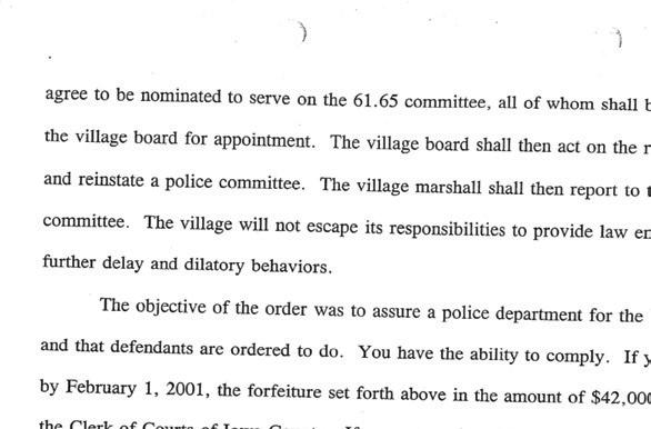permanent limitations on the powers of the village board. Again, I cannot entirely rule it out based on what I’ve seen, but such a state of affairs is unlikely. The court order did not suggest that the court was maintaining its oversight of the agreement between the parties in that case, or that any party had ongoing duties other than what had been set out in the existing law. The village was required to reinstate the police committee but had it intended to require the village to keep it until further notice, it would probably have said so, because otherwise, that is not the law, and the village could still decide to not have police at all anymore. It could be that the agreement in that case called for a fundamental change, but it appears to me that the immediate conditions that followed the issuance of the order are simply being maintained through habit and bureaucratic inertia.