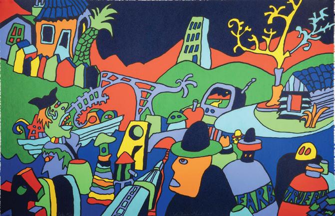 When we saw one of John Himmelfarb's recent works, we asked if he minded us saying it was reminiscent of a mix of Dr. Seuss meets "The Beatles: Yellow Submarine" (1969 film), in the absolute best way possible?