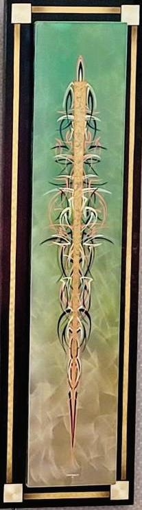 Mike Chamberlin is exhibiting his mixed media art in the Community Room Gallery during the month of July. He discovered his passion for art during his time at Madison East High School and, in the summer of 1979, Mike delved into the sign industry, immersing himself in the intricacies of traditional sign painting, airbrushing, pinstriping, and gold leaf techniques. In 1992, he took the leap and founded his own sign company. Upon retiring in 2021, Mike redirected his artistic focus to showcase pinstriping as a distinctive art form. Experimenting with epoxy resin to add depth and incorporating various types of leaf—gold, silver, copper, variegated—he creates unique pieces. His artistic vision extends to using wood and recycled materials, resulting in one-of-a-kind artworks that blend tradition with innovation. Mike’s work is available for viewing during regular library hours when the Community Room is not in use. Please ask for the key at the circulation desk.