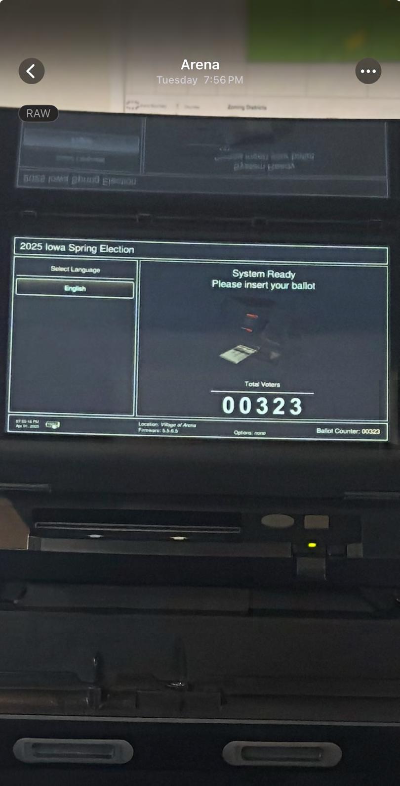 ○ Naeger notified the Iowa County Clerk Megan Currie, who declined to help due to the rarity of the machine and her unfamiliarity with it, stating: “I received an email from the clerk that they will be making copies of the ballots due to not having enough from the printer. I am unable to assist due to the village having a different type of tabulating machine from the majority of the other municipalities in the county.” Naeger then made an unknown number of copies of the ballot on legal paper on the Village copier machine, which were then used for the duration of voting. Copied ballots were then dropped directly into the ICE machine bin, but then were sorted out later and counted with the sequestered ballots containing write-in votes.