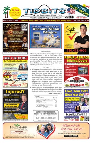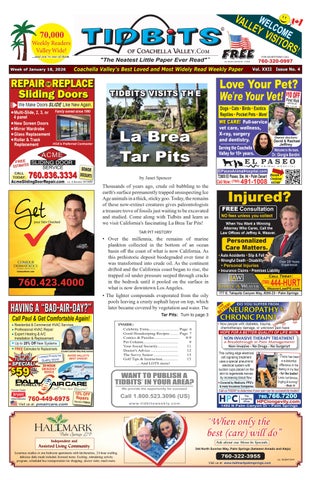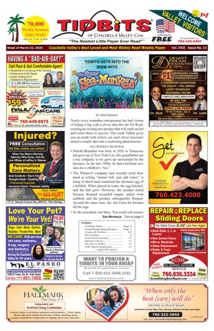 • • • Tidbits of Coachella Valley is a family friendly weekly newspaper featuring fun & interesting articles, trivia filled stories and helpful tips along with games, puzzles and quizzes to keep your mind sharp- and put a smile on your face. • • • Tidbits delivers affordable advertising results. Savvy business owners confidently advertise in Tidbits, knowing that their message targets an affluent and movtivated audience of over 70,000 readers every week. • • • Tidbits circulation covers the Coachella Valley, with over 700 distribution locations from Palm Springs to Indio - and every city in between. And now, loyal readers can get their Tidbits fix anytime online, from anywhere in the world, with new weekly editions and past editions archived at ISSUU.com.