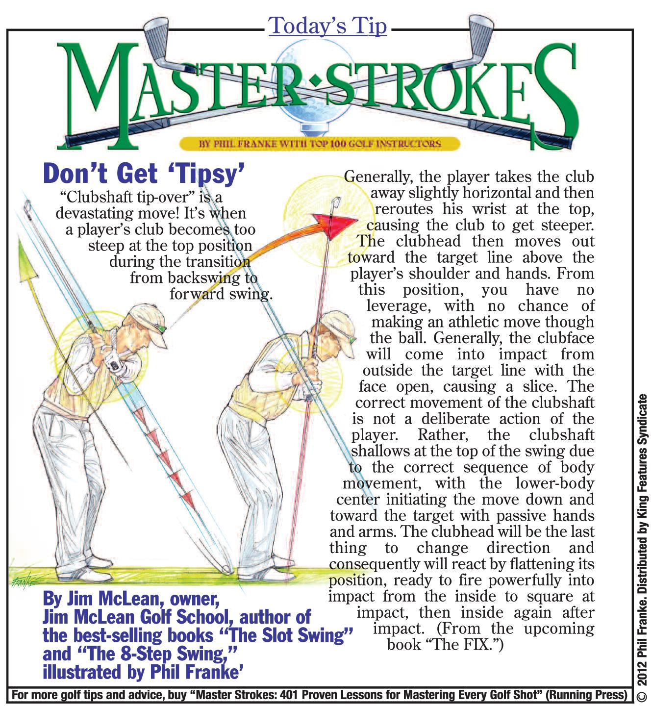 The golf shirt’s placard can serve as a great “reference line” for the spine when you look downward at address. Due to the body tilt, the placard should align toward the left instep. If the line points right sided, or outside the left foot, the upper body has drifted outside its zone of two to ten degrees of tilt. Take note that the tilt may increase for the longer clubs, but it should